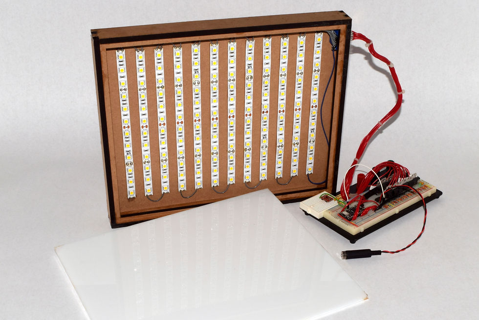 Lightbox can create unique effects as both an ambient light and as a mesmerizing screen. I set up the visualizer for many of my friends' smaller shows, and I was excited to be able to support their art in my own way. Ultimately, I stopped development because creating a larger light (or multiple lights) was cost and labor prohibitive.